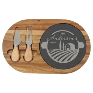 12 1/2" x 7 3/4" Acacia Wood/Slate Oval Cheese Set with Two Tools