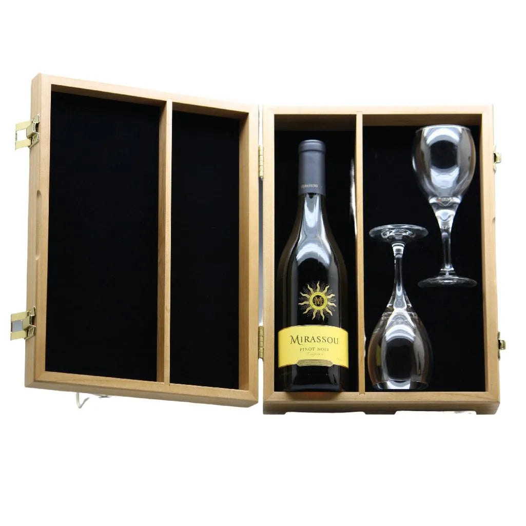 Wine Box Walnut w/2wine glasses